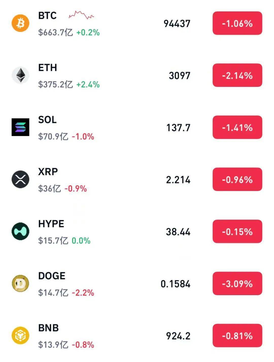 【大河财立方消息】北京时间17日,在拉升至96600美元之后,比特币再度跳水,一度跌至93778.6美元,抹去今年以来所有涨幅。截至7时左右,比特币跌超1%,跌破95000美元。多只加密货币产品跟跌。